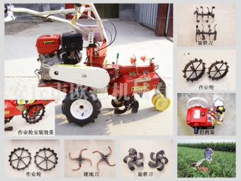 1、標(biāo)配 2、扶壟器 3、播種施肥簍 4、除草輪 5、打藥泵 6、旋耕機(jī)